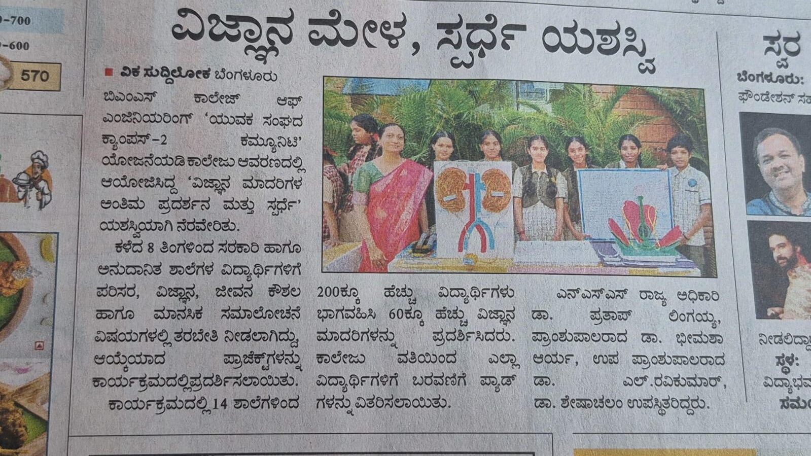 Won 2nd Prize by 10th A in Science model contest in BMS college
